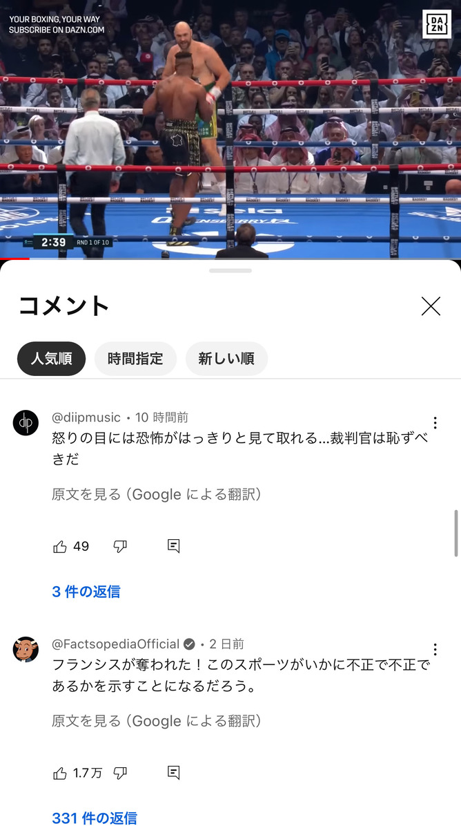 YouTubeで海外の試合動画見てコメント翻訳してみ?全員判定について語ってる