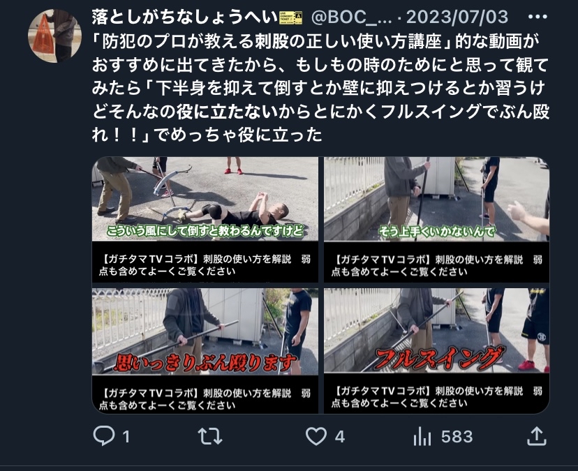 棒だと殺意の有無が問われるかもしれないけどさすまたなら捉えようとしたが抵抗されたんで自己防衛のために振り回したが通るかもしれない