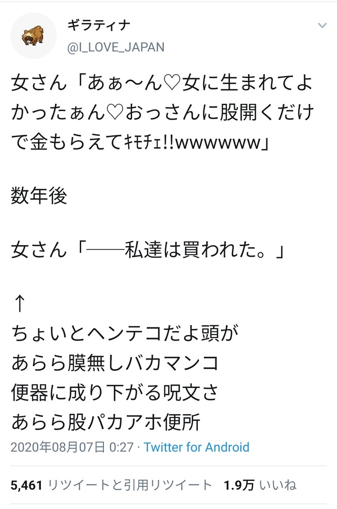 521:可愛い奥様 : 2020/08/09(日)10:56:19.63 ID: CGap5XIS0.net
