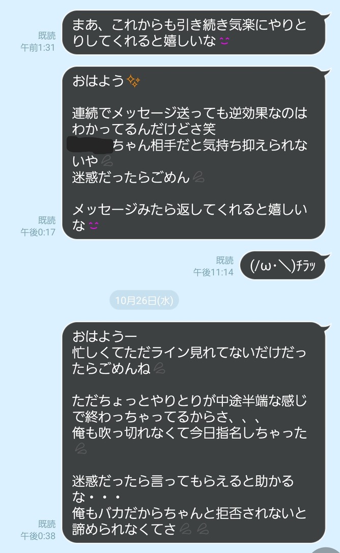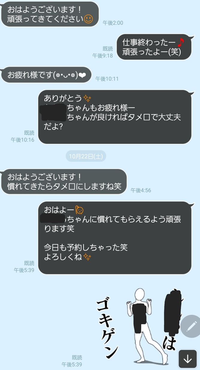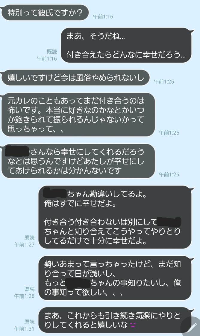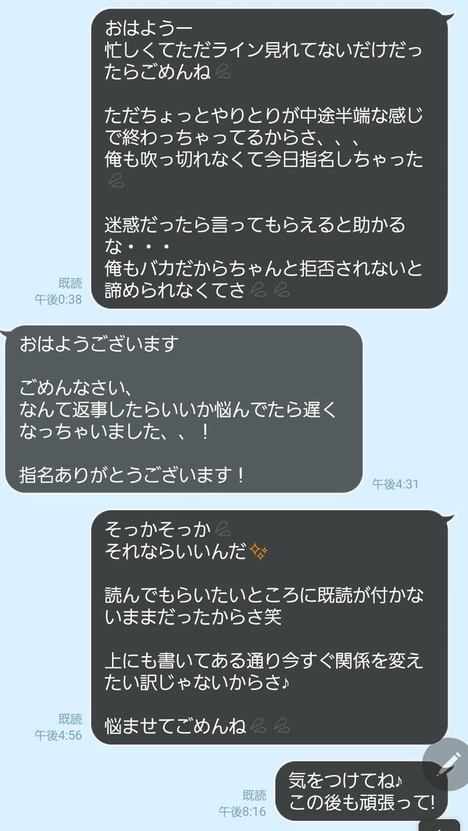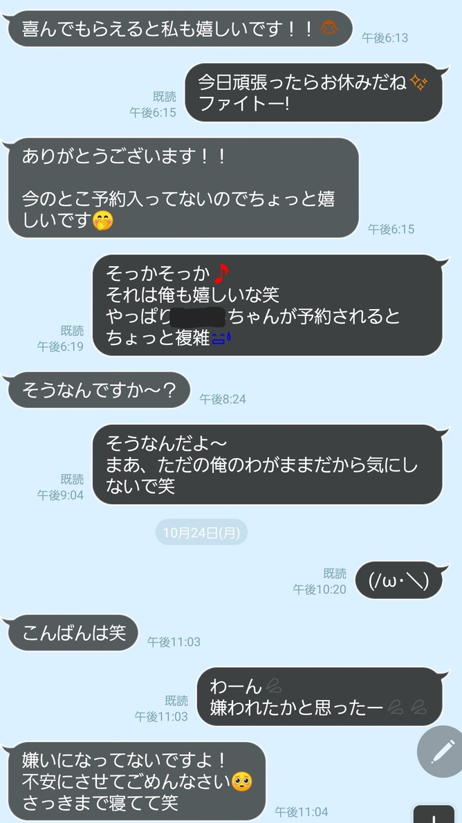 店自体は前から使ってる店でたまたま指名したらめちゃくちゃ可愛くて気に入ったからライン交換してそこから仲良くなって今にいたる