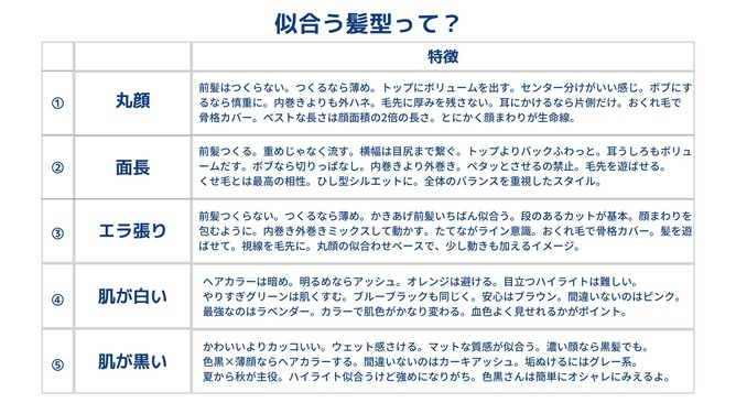 顔の形別・似合う髪型のポイント