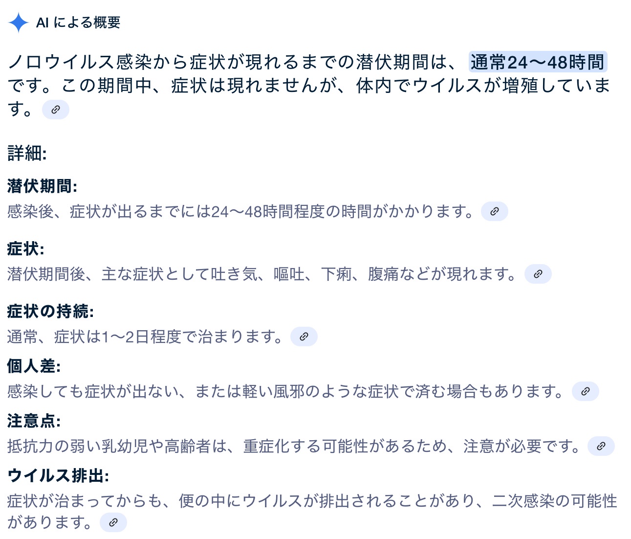 ノロウイルス感染から症状が現れるまでの潜伏期間は、通常24~48時間です。この期間中、症状は現れませんが、体内でウイルスが増殖しています。