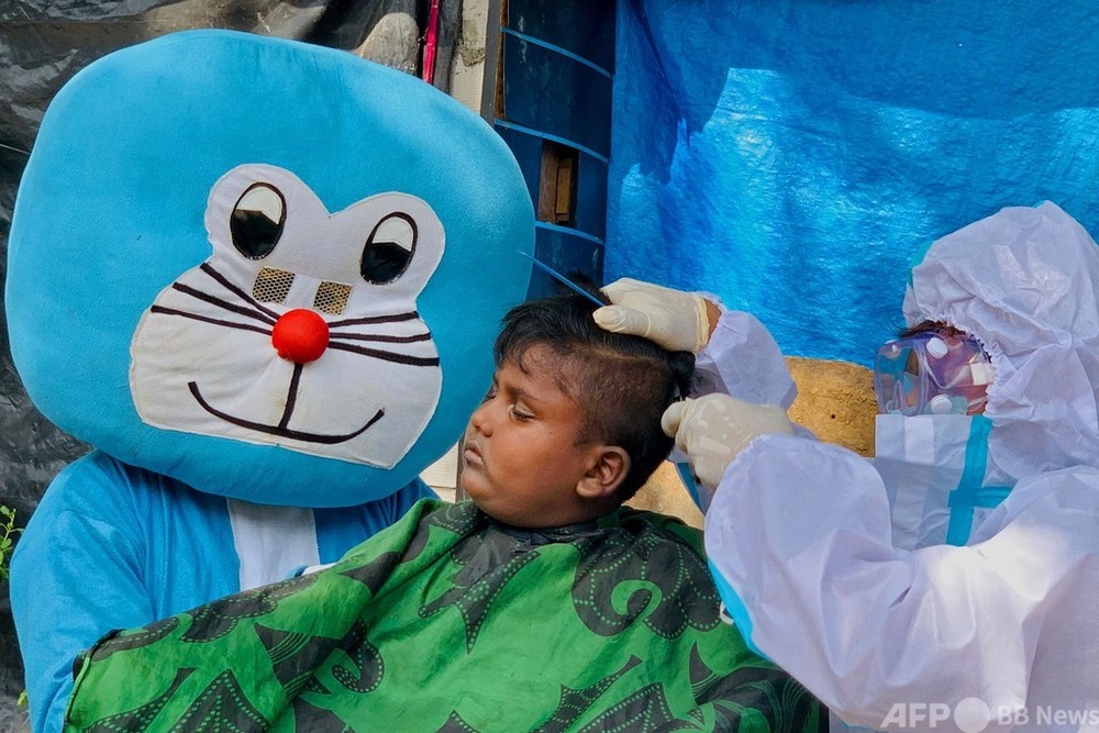 スラム街の子どもにヘアカットを、「ドラえもん」も登場 インド
