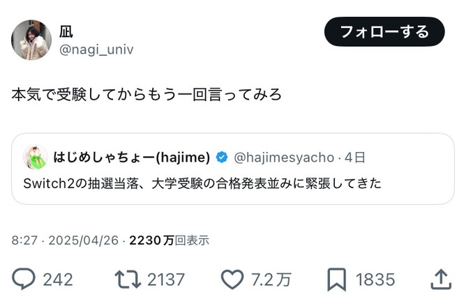 これに噛みつくやつ余裕なさすぎ