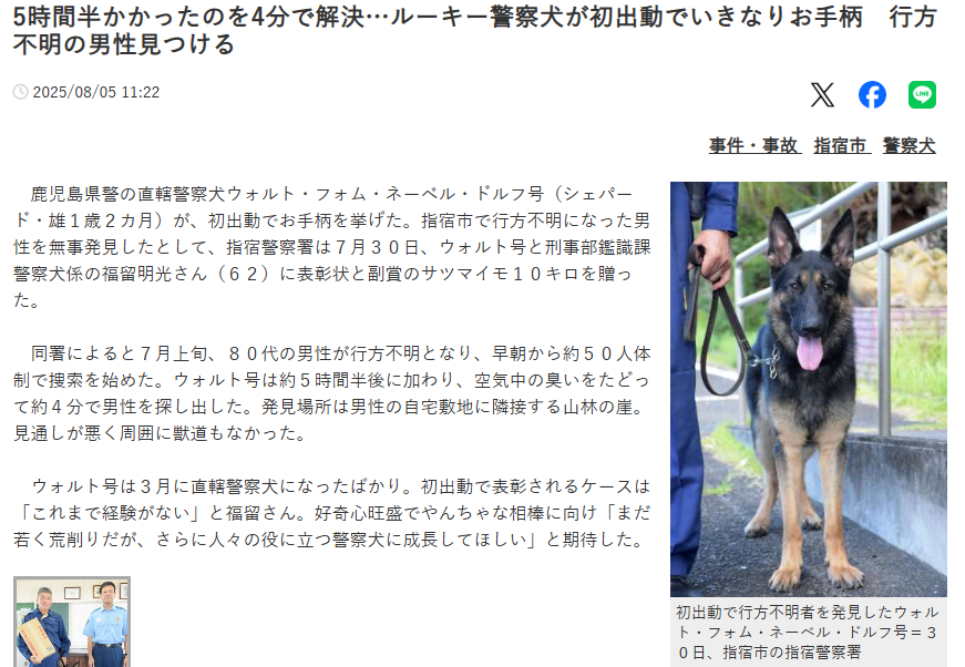 ワイの同期は30おったけど警察犬になれたのは1割いなかった
