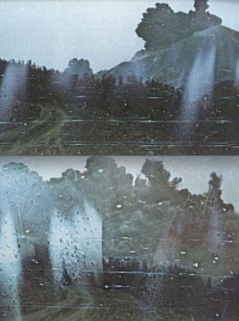 写真が撮影された直後に、右側の赤い車が爆発。