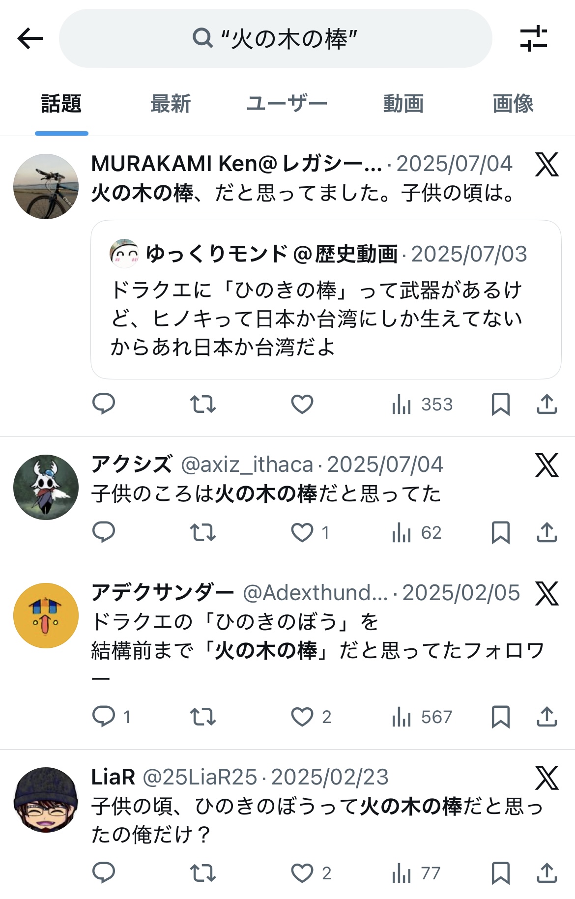 これ以外にも100投稿以上出てくる