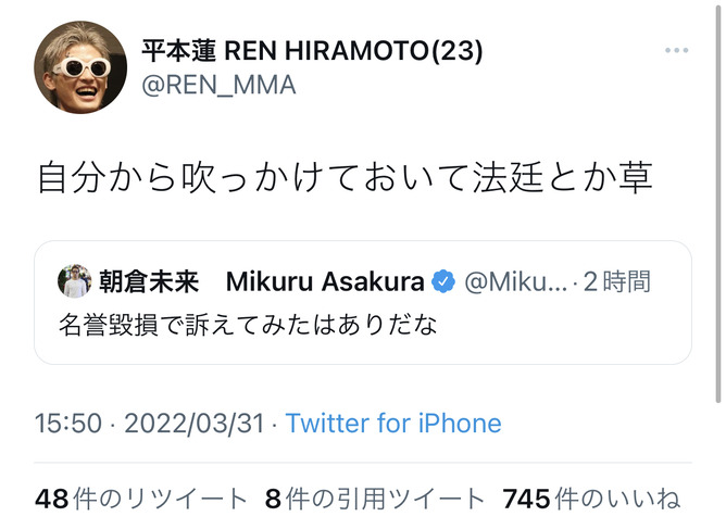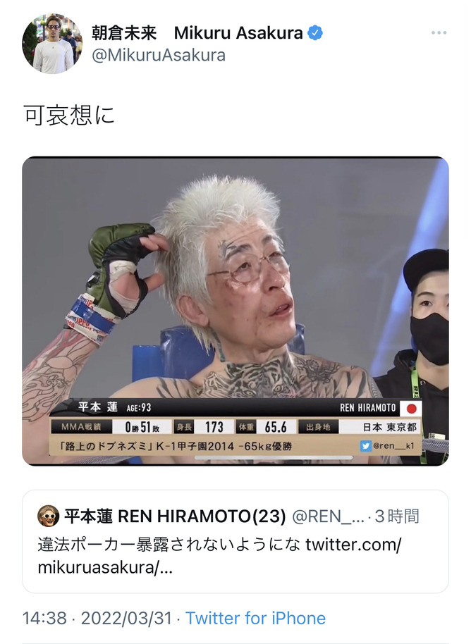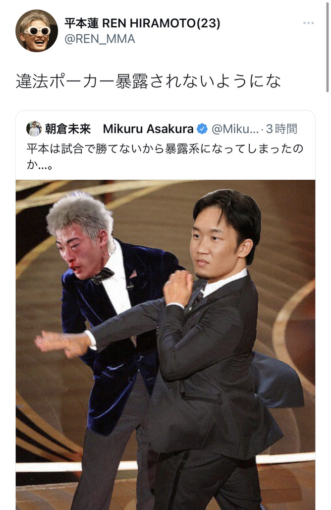 平本蓮が朝倉未来の賭けポーカーを仄めかす