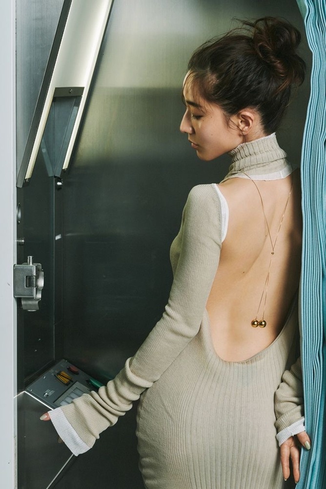 空けた胸元