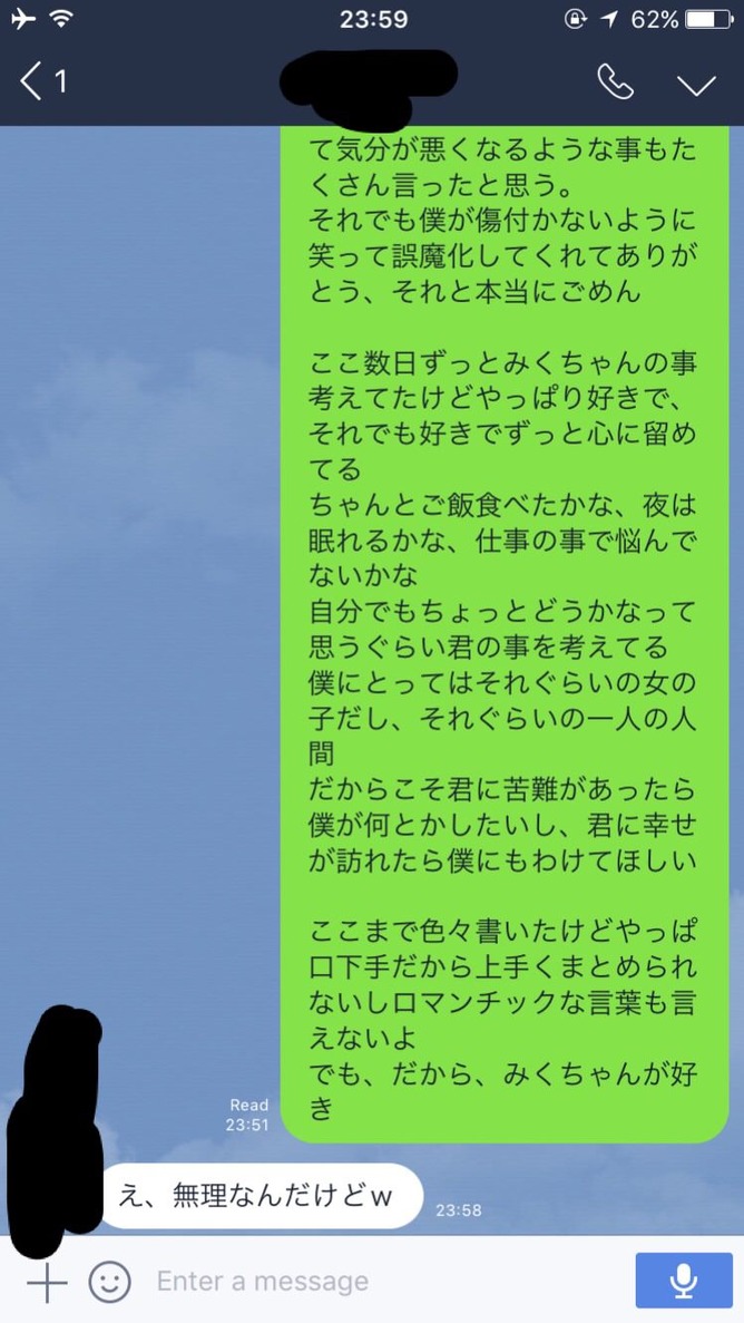 こういうキモいと言われるようなこと乗り越えないと彼女なんてできないんやで